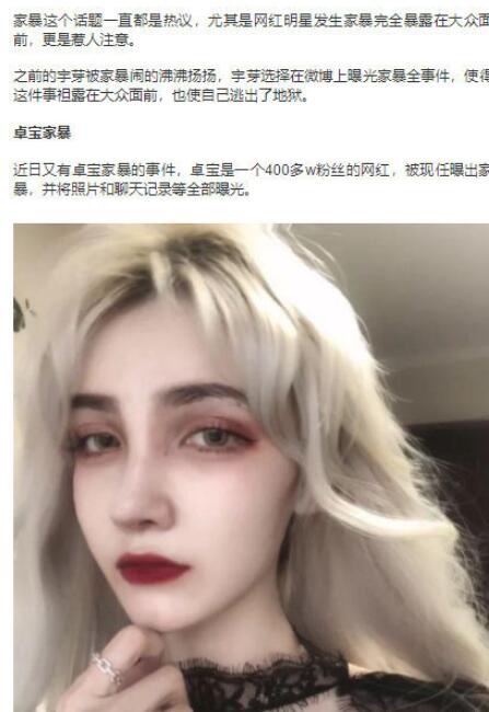 一個400多w粉絲的網紅被爆出家暴,兩人是女女,卓寶還一直花對方錢,對對方實施家暴!這怎么能忍