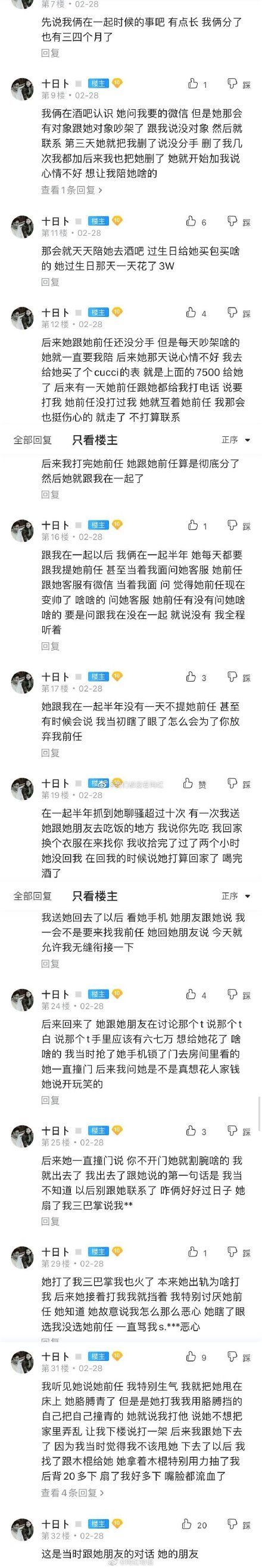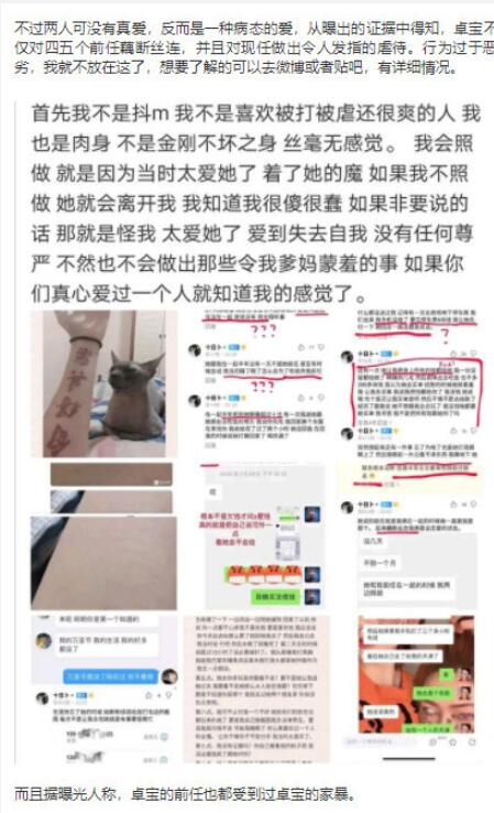 不過兩個人可能并沒有真愛,反而是一種病態的愛,卓寶不僅對四五個前任藕斷絲連,并且對現任做出了令人發指的虐待,行為過于惡劣,而且據曝光者稱,卓寶的前任英特受到過卓寶的家暴!